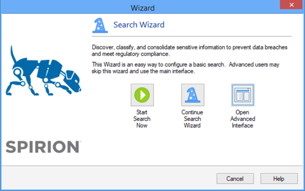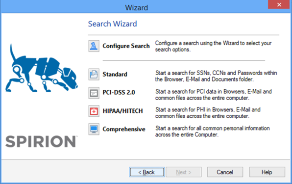 The Search Wizard is an easy to use, quick way to begin using Spirion by providing you with three options: