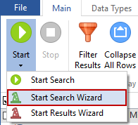 You can also initiate the wizard by clicking the Main ribbon, then the Start Search Wizard dropdown on the Start button. If the Search Wizard does not open when you launch Spirion, you can enable it via its Settings dialog box (Settings/Popular/User interface/Show Search Wizard on startup).