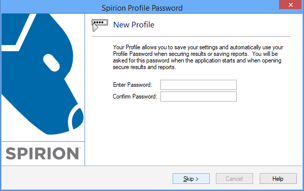 The first time you use Spirion you will see a dialog box to create a New Spirion Profile. This Profile is unique to the user logged into Windows. A single Windows user may not have multiple profiles. After you create your Profile you will always be required to sign into it because it can contain sensitive information about you and is encrypted.