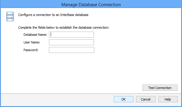Establish the fields below to configure a connection with an Interbase database: