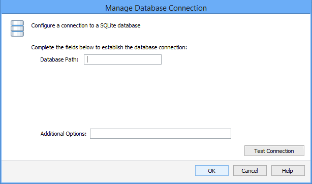 Establish the fields below to configure a connection with a SQLite database: