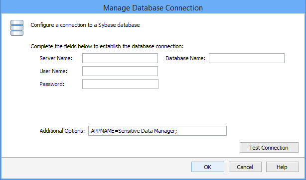Specify the application name to use when connecting to the database. For more information, please refer to your Sybase documentation. The default value is: APPNAME=Sensitive Data Manager; |