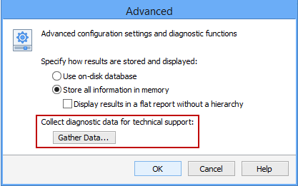 The Collect Diagnostic Data for Technical Support features provides a way for you to quickly and easily gather log, policy, profile and configuration information to send to the customer support team, if you experience an issue and that information is requested. After clicking, "Gather Data...", you will be prompted for a location to save a compressed zip file with the relevant information. You may review this information before providing it to the support team to ensure that no confidential information has been collected. As necessary, attach the file to a new or existing support ticket.