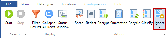 Use the Ignore feature to prevent non-relevant information from being searched. For example, Spirion may uncover a sample credit card number inside a temporary internet file or a public password that you do not want to secure. In this case, you can tell Spirion to ignore those matches for the current and future searches. Ignored matches are added to an approved exception list, the Ignore List, so you never see them again.
