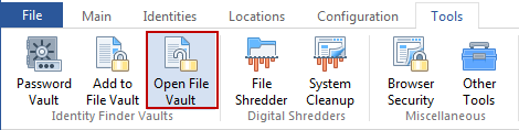 To open or modify settings on your File Vault click the Open File Vault button on the Tools ribbon.