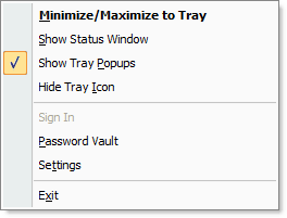 The System Tray Icon allow quick access to common tasks. You can enable it by Showing the System Tray Icon.