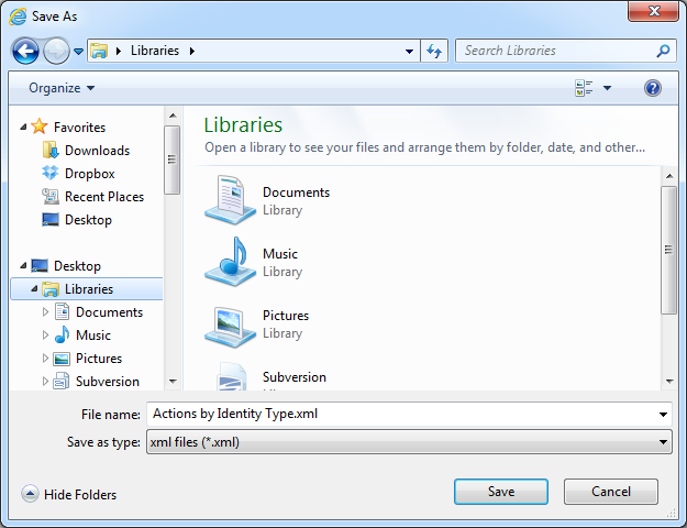 Report definitions are a description of a report (for example the columns, relationships and filters) but do not contain any data from the Console database. These descriptions can be exported as xml definitions files to be imported into another Console server. The most common scenarios for exporting and importing report definitions are to share reports with other organizations via the Spirion forums or to move reports from staging/test Consoles into production.