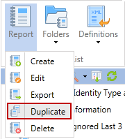 To duplicate a report, click the Duplicate button.