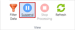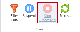 The Stop Processing button stops the view from updating when the selection in the Report List changes. Unlike the Suspend button, which prevents the view from updating, the Stop Processing button only stops the current update. If you were to select another report or folder the view would be updated.