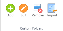 Custom Folders: Appears when editing policies and the Custom Folders Search Location is selected to allow adding, editing, importing and removing of folders to include or exclude from a search. |