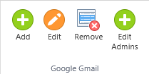 Google Gmail: Appears when editing policies and Google Gmail is selected to allow adding, editing and removing of specific Google accounts. |