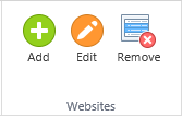 Websites: Appears when editing policies and the Websites Location is selected to allow adding, editing and removing of websites to include in a search. |