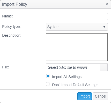 | Name | Enter the name of the new policy that is be created from the imported XML file. This is the name that displays in the policy list. |