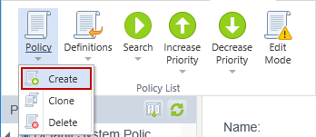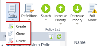 Note: The policy type cannot be changed after it is created, but the Clone function can be used to assist with that task.