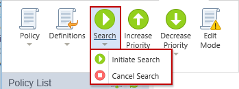 When initiating a search via the Search button, the Console will automatically create a policy with a task scheduled to execute immediately after the endpoint applies the policy. The endpoint will not start the search until it successfully downloads and applies the policy.