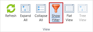 To hide the settings filter bar, click the Show Filter button and the button loses its highlight.