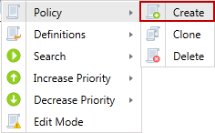 The Policy Menu item provides the ability to create, duplicate or delete a policy.