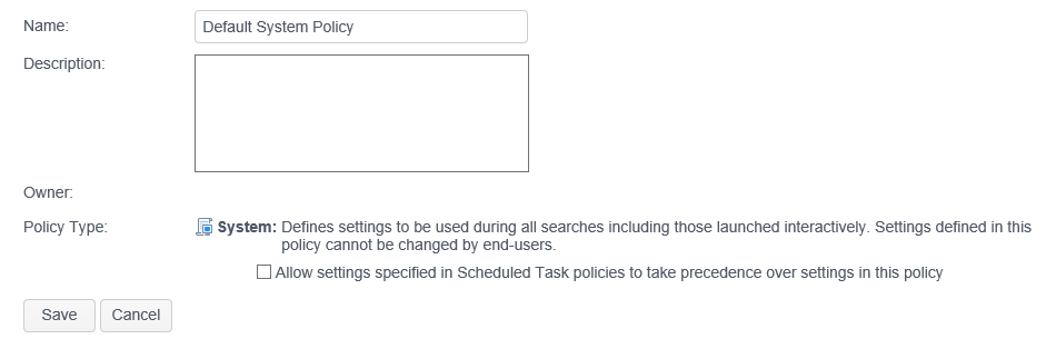 | Owner | The user that created the selected policy. This value is automatically populated when the policy is created and cannot be changed. |