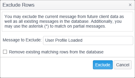 | Messages to Exclude | To exclude a specific log message, enter the log message to be excluded in the Message to Exclude text box. |
