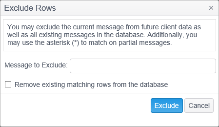 Clicking Add displays the Exclude Rows dialog.