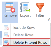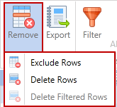 The Remove button provides options to prevent future messages of the selected type from being imported into the Console, and to permanently delete the selected rows or filtered log rows from the database.