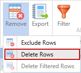 The Delete Rows button provides the ability to permanently remove the selected row from the database.