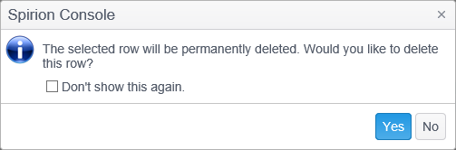 Select the message that you wish to delete by single left clicking it. Click the Remove button and then click the Delete Rows option. A confirmation dialog prompts you to ensure that you would like to delete the selected row. Click Yes to confirm the deletion or No to cancel the deletion.