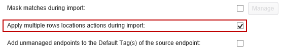 If an action (shred, redact, encrypt, quarantine, Restrict Access, recycle, ignore), has been applied to a location on the endpoint, when this action is reported to the Console during importing, the Console searches for all previously imported search results of this location and applies the same action to them. In normal operations it is recommended that this setting remain enabled. If you find that imports are taking an excessively long time to complete or there are timeouts occurring in the ServerService log, including ApplyMultiRowLocationActions in the text of the exception details, then you may disable this setting. Disabling this setting speeds up the importing of results into the Console database by applying the action only to the currently imported results and not to any previously imported results. When disabled, it is recommended that the Actions Clean Up service job be scheduled to run on a regular basis to correct any inconsistencies.