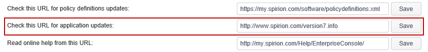 This URL is used to check the Spirion website for any updates to the Console. If you attempt to set this value to empty text, the default value is automatically populated.