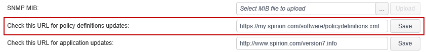 This URL is used to check the Spirion website for any updates to the Policy Definitions. If you attempt to set this value to empty text, the default value is automatically populated.