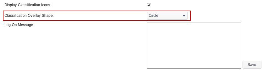 This is the shape of the classification overlay that displays when the Display Classification Icons setting is disabled or when there are no icons loaded for a classification. The default value is Circle.