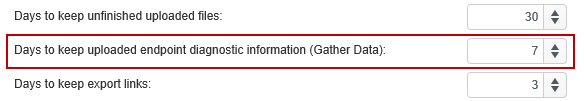 Days to keep uploaded endpoint diagnostic information (Gather Data)