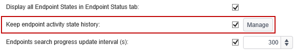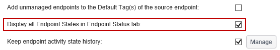 When this setting is enabled, the Endpoint State column of the Endpoint Status view displays the last reported state for the selected endpoint for both task related and interactive states. When disabled, it displays the last reported interactive state only. This setting is disabled by default.