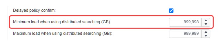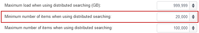 When using the minimum number of items while using distributed searching, this is the minimum amount of items that can be assigned. Valid values are 0-999,999. The default value is 20,000.