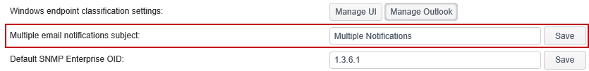 If multiple email notifications are due to be sent to a single recipient as a result of multiple workflow rules having been executed and multiple classifications or assignments being made, rather than sending one email for each rule, they are merged together into a single email. You may specify the subject line for the email here by entering the text and clicking Save.