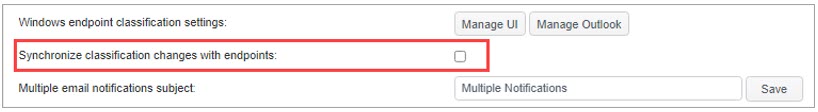 Classification Sync ensures that any changes in a file's classification made within the Console UI are sent to and applied to the file.