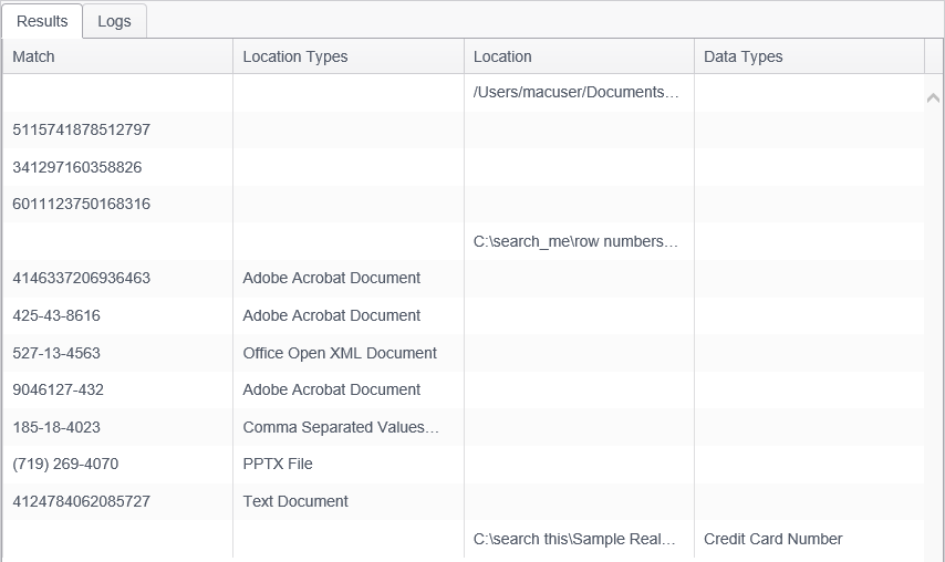 - Data Types: This is the specific data type that had been excluded. (SSN, CCN, phone number, etc.)