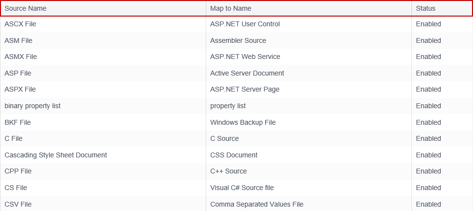 Console ships with a pre-configured list of the most common file types and their mappings.