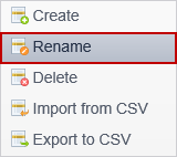 To rename an existing list, select the Rename menu item. Clicking Rename displays the Rename List dialog. Enter a new name for the list and click Rename.