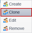 To clone an existing role, select the Clone menu item.
