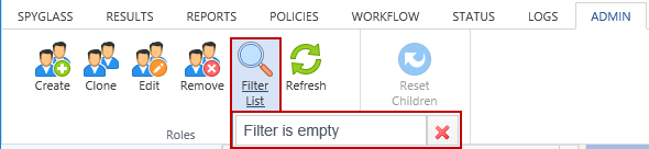 The Filter List button allows you to modify the Name/AD Groups List to only display roles that contain the text provided in the filter. The filter operates only on the role name.