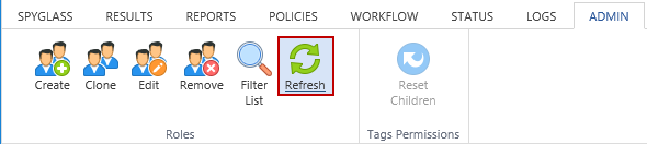 Click the Refresh Button to update the roles and permissions to reflect any changes since the last logon or refresh.