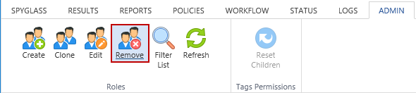 The Remove button permanently deletes the selected Role and cannot be reversed.