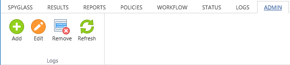 - Logs: Allows adding, editing and removing of excluded logs and refreshing the list of excluded logs to reflect any changes since the last logon or refresh.