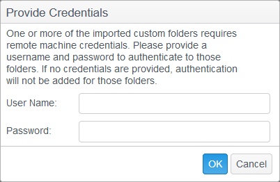 If the custom folder list to be imported requires remote machine credentials, the Provide Credentials dialog is displayed: