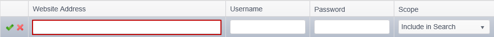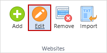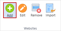 - To accept the website address and add it to the Websites list hit the Enter key or click the green checkmark. To discard it click the red X.