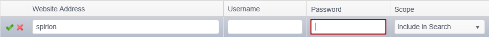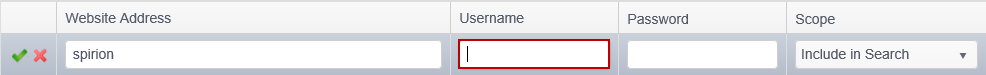 Website Address is required. Scope is required when there is a Username and Password in the file. Username and Password are optional here.