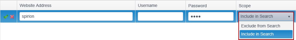 - Click the Scope field and select whether to include or exclude the website from the search from the drop-down.