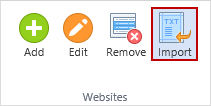 To import a list of Websites to be included in the search on the endpoint(s) to which the policy applies click the Import ribbon button.