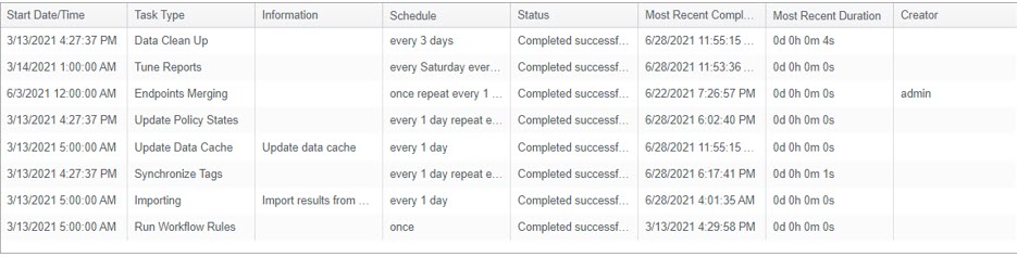 | Most Recent Completion | The date and time that the service task has most recently completed running. The value is blank if the service task has not yet run for the first time. |